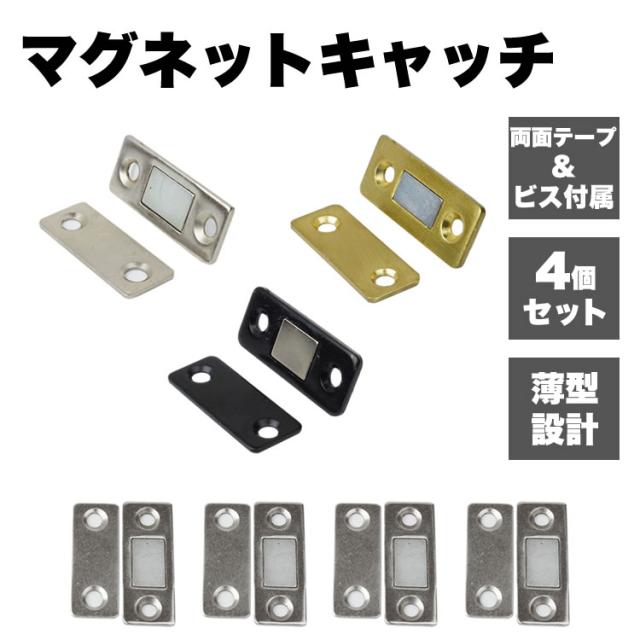 マグネットキャッチ 4個セット 磁気キャッチ ステンレス 薄型 強力 ドア止め金具 家具扉 戸棚 ドアキャッチ DIY 引き戸 両面テープ ネジ