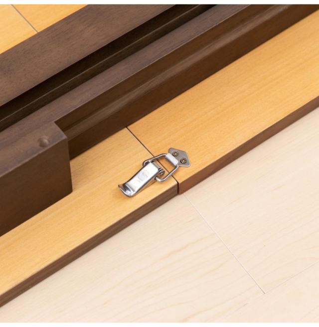 伸?部分は、天板と木目が繋がるように設計されており、更に中に収納することが出来るため、小さいサイズで使用しているときにも、見た目の違和感もありません。