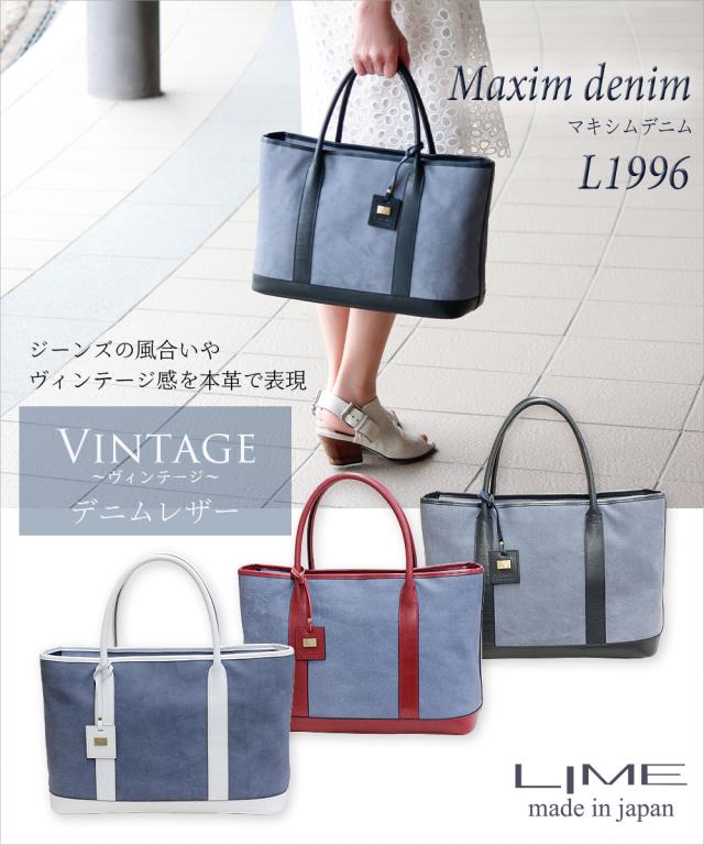 トートバッグ レディース 大容量 レザー 通勤 通学 ビジネス 仕事 ビジネスバッグ 日本製 本革 革 デニム調 デニム トート バッグ 大き目 ブランド 旅行 軽量 軽い マキシムデニム LIME ライム L1996 おしゃれ オシャレ 大人 女性 女性用 シンプル きれい ブランド