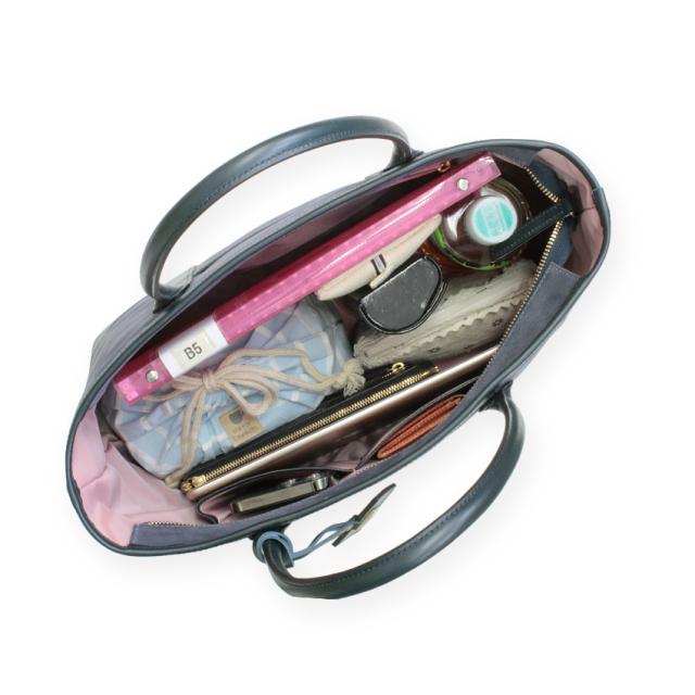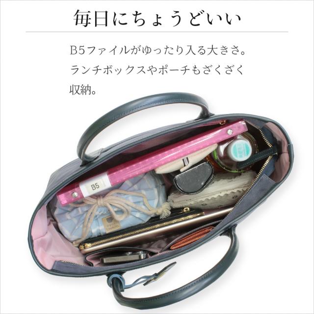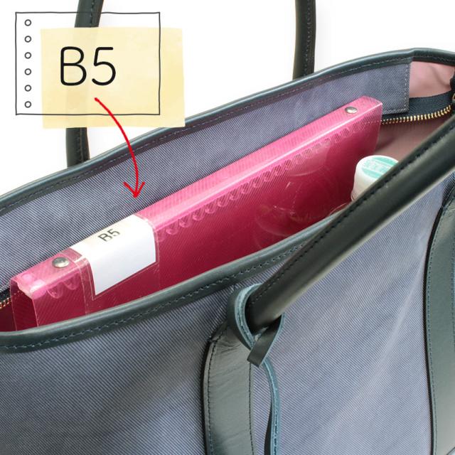 毎日に使いやすいB5サイズがゆったりと入る大きさで、マチがあるので収納力も◎。