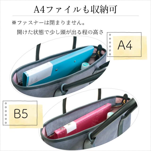 ファスナーを開けた状態ではA4サイズも収納でき、通勤や通学、ショッピングや旅行等にも万能に活躍します。
