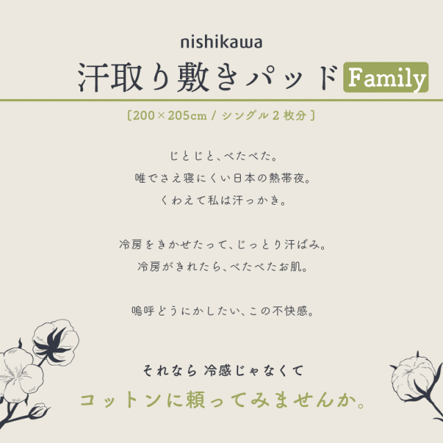 【1,980円値下!】敷きパッド ひんやり 冷感 コットンクール ファミリー 200×205cm 春 夏 綿100% 接触冷感 シーツ 四隅ゴム付き 洗える
