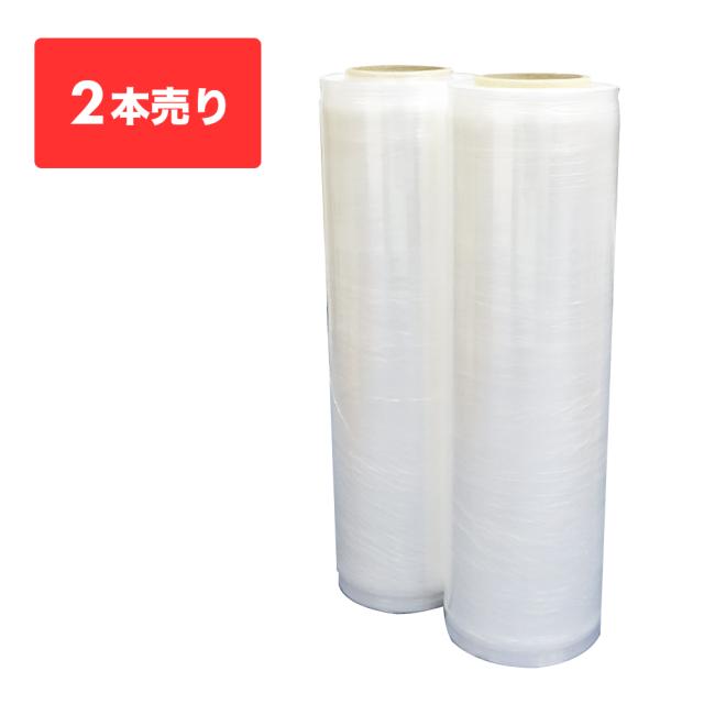 ストレッチフィルム エッジ強化タイプ 450mm幅x600m 0.008mm厚 透明 2本 STR-450-08E-b2 /梱包用フィルム 梱包ラップ 大型ラップ 手巻きタイプ
