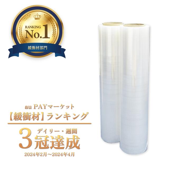 商品の梱包や荷崩れ防止、輸送時の荷物の破損などを防ぐのに便利なストレッチフィルムです。 商品の保管・保護や防塵・防水としても役立ちます。