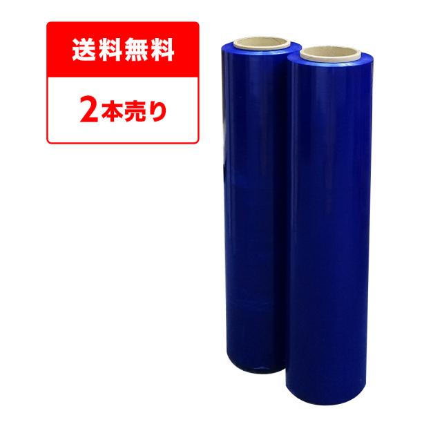 カラーストレッチフィルム 500mm幅x300m 0.020mm厚 青 2本 STR-500-20BL-b2 厚手タイプ /梱包用フィルム 梱包ラップ 大型ラップ 手巻きタイプ
