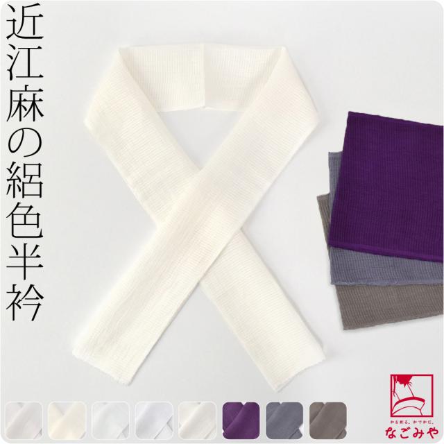洗える 半衿 カラー 半襟 夏用 日本製 衿秀 近江麻 手もみ風 本麻 色半衿 着物全般用 麻 おしゃれ 大人 女性 男性10023165