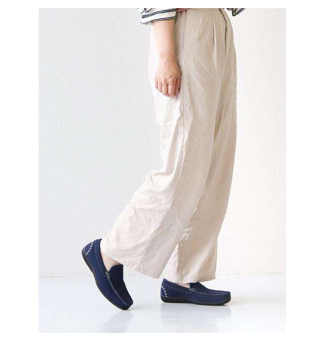 やや太めのステッチでアクセントをつけたり、レザー調のインソールで高級感を演出したり、シンプルさの中にも細かいこだわりが目を引きます。