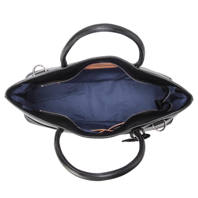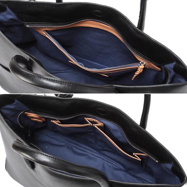 | 2Way Business Bag PAP103 オン・オフ兼用で使える2wayビジネスバッグです。ボトム部分に丸みを持たせているため、カッチリしすぎず上品な印象を与えてくれます。 ハンドルがやや長めに設計されており、男性の方でも肩掛けしていただくこともできます。 本体はB4サイズに対応しており、荷物がたっぷり入る容量です。フロントにはスマホ等の収納に最適な差し込みポケットを装備。メインルーム内にはファスナーポケットやマチ付き差し込みポケット、円形のコード巻きでイヤホン・コードの固定ができるなど、小物の整理にも便利です。開閉部分は天ファスナー付きなので、荷物の飛び出しを防いだり防犯の上でも安心です。 また、内側にはヌメ革が使用されており、使い込む内に飴色に焼けていきます。革独特の経年変化もお楽しみいただけます。 付属としてキーストラップ、ショルダーベルトが付いており、どちらも取り外しが可能です。 Material 【素材にはゼブー牛(こぶ牛)角シボ型押し革】 本体素材には品種ゼブー牛(こぶ牛)コンビネーションなめし(混合なめし) 角シボ型押し革を使っています。ゼブー牛の原皮を回転するタイコと呼ばれる容器にタンニン、油分などを入れ容器を回転させ、なめされたタンニンなめし革を再度同じ工程でクロムでなめす方法がコンビネーション鞣しです。 一般的にはこの工程が逆の場合が多いですが、本製品にはタンニン主体のクロムなめしを行っております。タンニンレザーよりも変色・変化が控えめで、コバ(革の断面)が整うのでコバ磨きの手法ができ、メンテナンスも比較的手軽など、両なめしの優れた特徴を併せ持つ革です。本体の縫製面では、表側の革をタタキ縫い、内装を中縫い縫製を用いています。表側と内装を別々に縫製し、最後に天マチでまとめる仕様で、丹念にミシンを使い手作業で手間の掛かる縫製を施しています。ハンドル付根の縫製には外タタキ仕様にしております。 ハンドルを取り付ける受け側を上にしてステッチを入れる仕様で、縫い代部分が見えない為、縫製が難しく時間が掛かりますが、正面からステッチが見えづらく仕上がりが綺麗です。 Spec 【外側】 差し込みポケット×1 付属:キーリング×1 【内側】 ファスナーポケット×1 マチ付き差し込みポケット×2 |