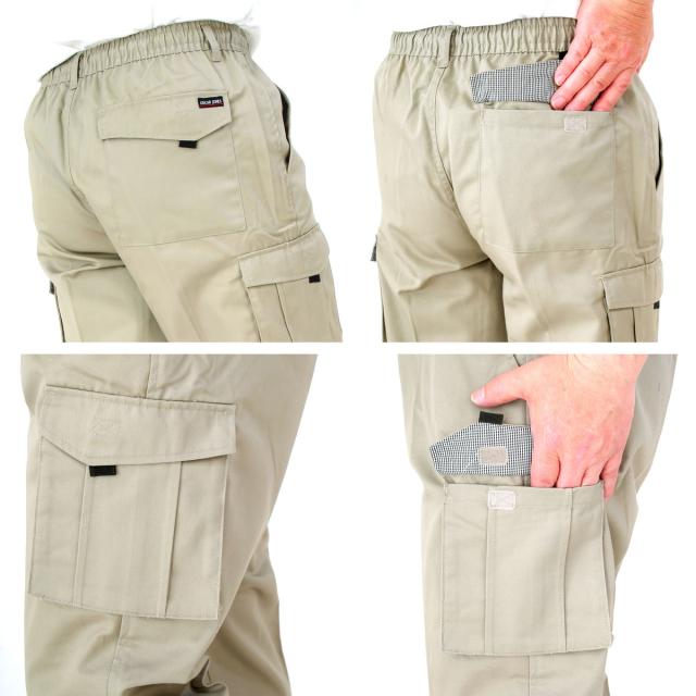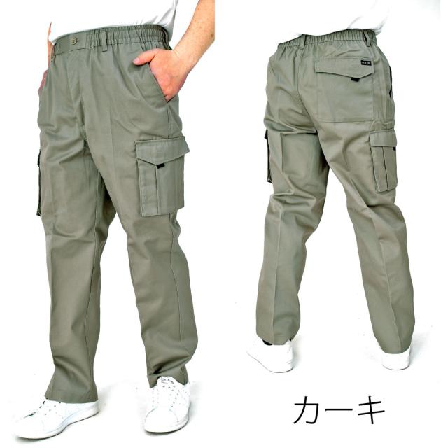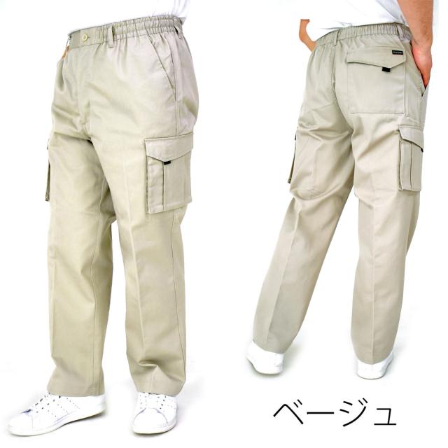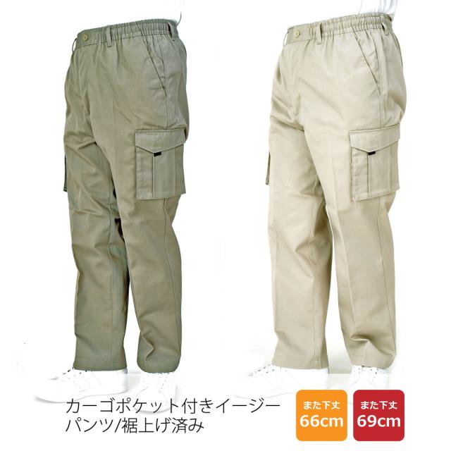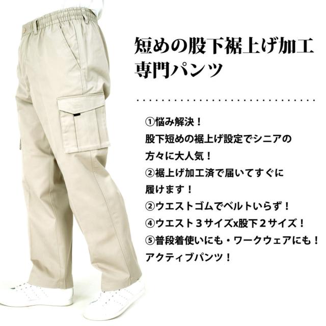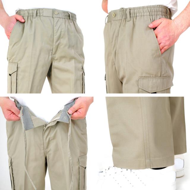 イージーパンツ カーゴパンツ メンズ シニア 裾上げ加工済 綿混 コットン 前ファスナー ベルトループ付き 部屋着 ルームウェア 作業着 ワーキングウェア すぐはける股下ピッタリ 【送料無料】
