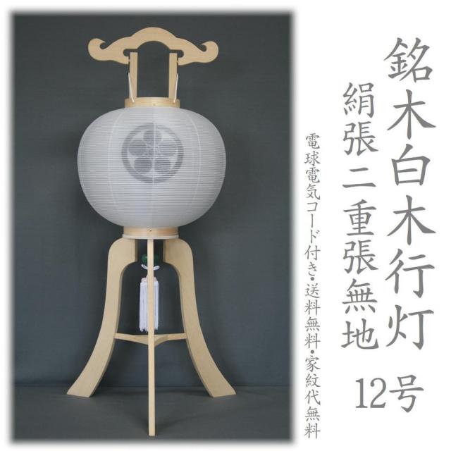 家紋入り 大内行灯 絹張り 2重張り 白木 12号 神道のお宅に最適です 絹二重 大内行灯 新盆 初盆 神道 八女盆提灯 電気コード式 家紋代込み