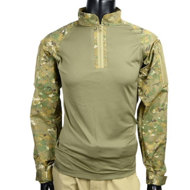 腕部分と胴体部分で生地が分けられたベーシックな戦闘用シャツ。袖・襟部分は裂けに強いリップストップ生地製で、表面にはIR加工が施されておりナイトビジョンによる視認を防止。