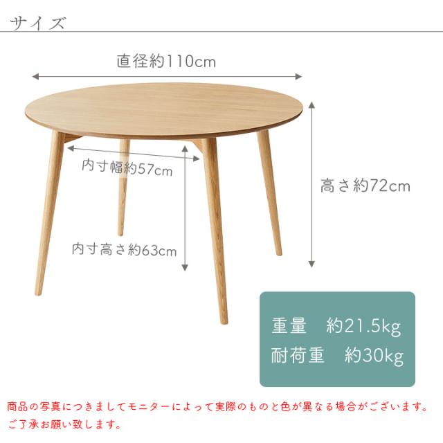 円形ダイニングテーブル リビングテーブル 丸テーブル 天然木 食卓テーブル 机 110cm幅 北欧 Y154