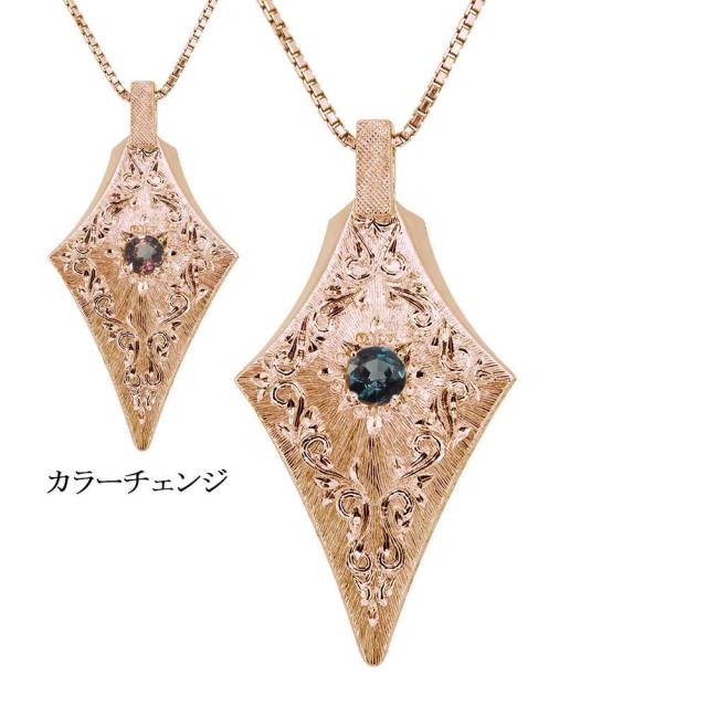 ネックレス レディース アレキサンドライト ひし形 レディースペンダント k10 彫り 洋彫り