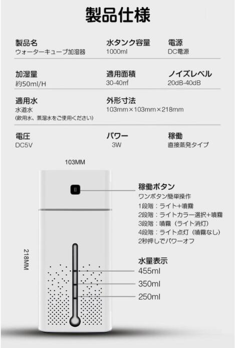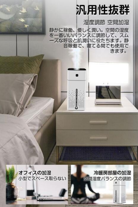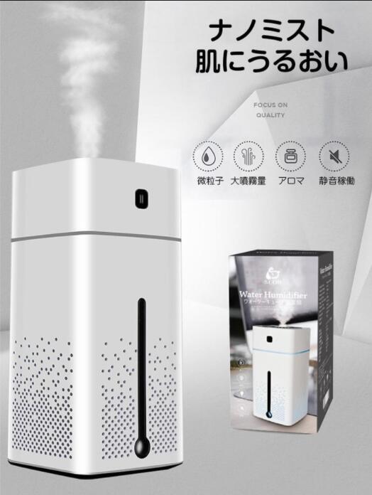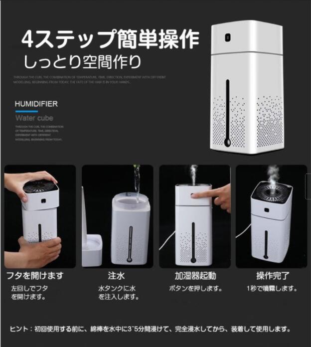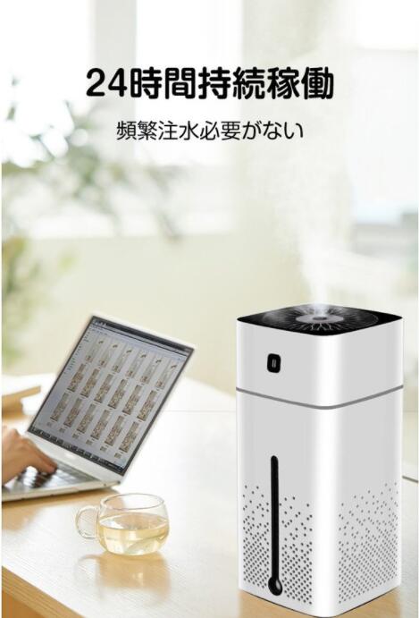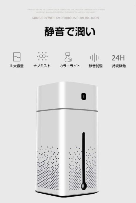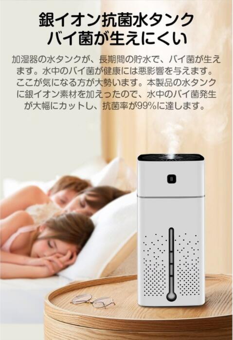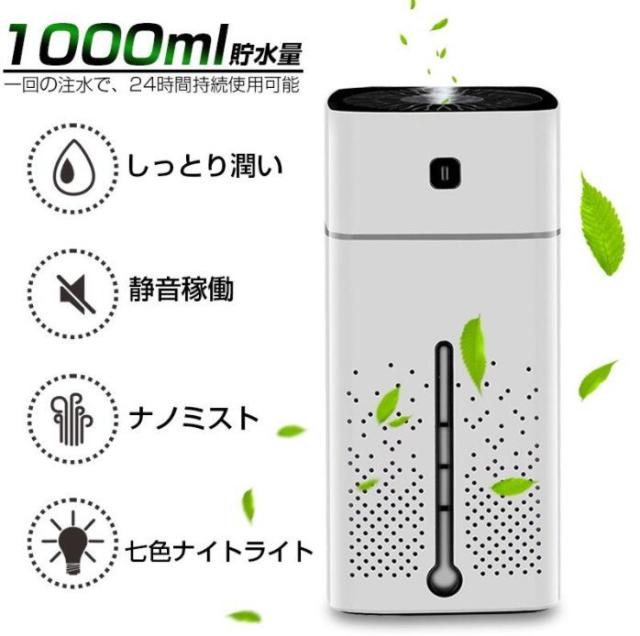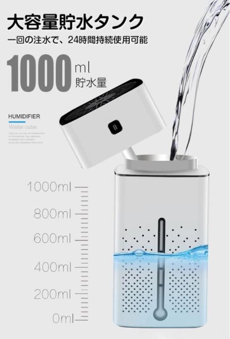 【スマートで大容量】1000ml大容量水タンク、24時間連続加湿可能です、お昼と夜間は頻繁に注水必要がありません。エアコンと乾燥の季節の空間湿度調節をこの加湿器で全て解決します。