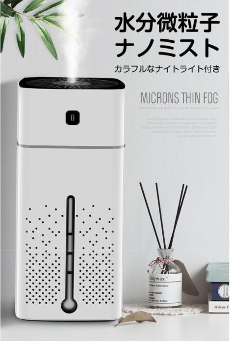 加湿器 ナノミスト 卓上加湿器 噴霧 ナノスチーム オフィス 車載 家庭用 乾燥防止 24時間持続加湿 七色ナイトライト付き