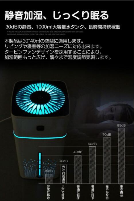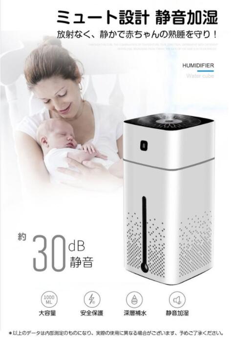 【ミュート設計 静音加湿】本製品は30dBの静音で稼働します。放射なく、静かで赤ちゃんの熟睡を守ります。タービンファンデザインを採用することにより、加湿範囲もっと広げ、隅々まで湿度調節実現します。
