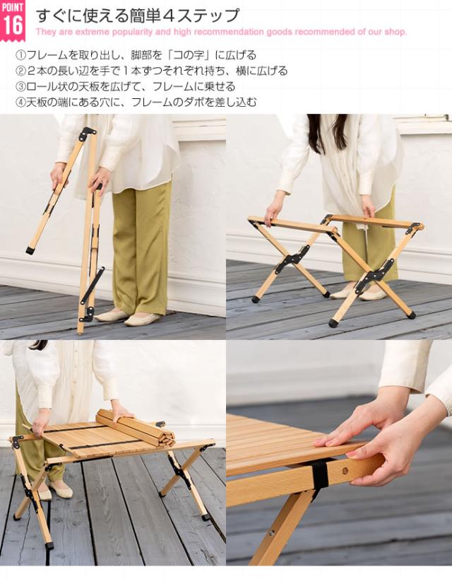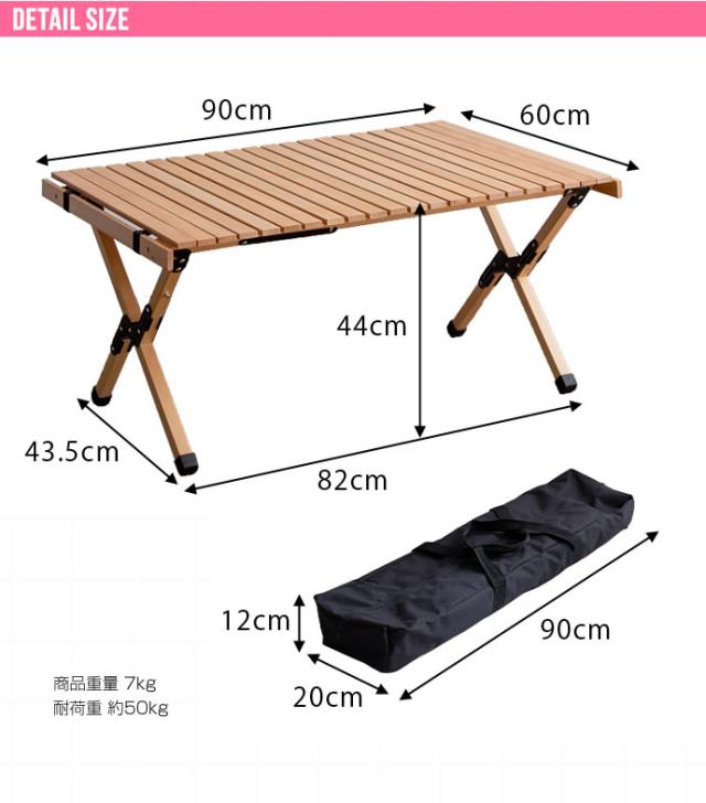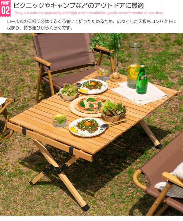 天然木 アウトドアテーブル 幅90cm 折りたたみテーブル ロールトップテーブル 木製テーブル 折りたたみ アウトドア ピクニック キャンプ 収納バッグ付き コンパクト バーベキュー(代引不可)【送料無料】