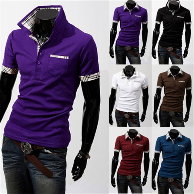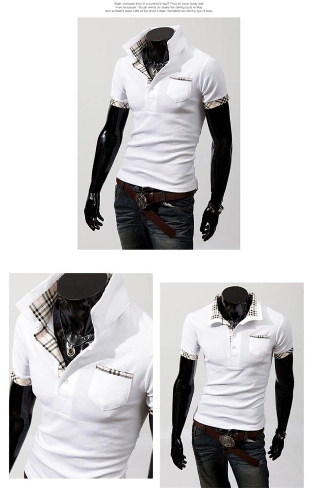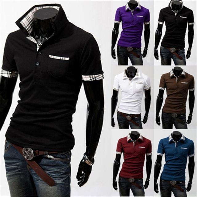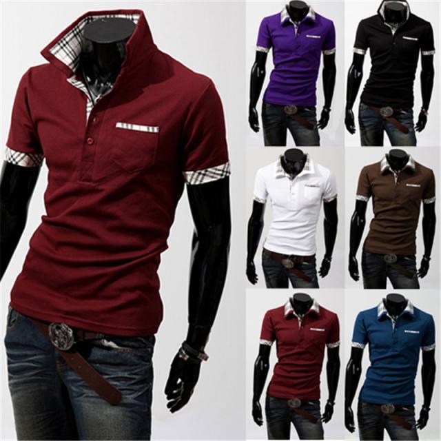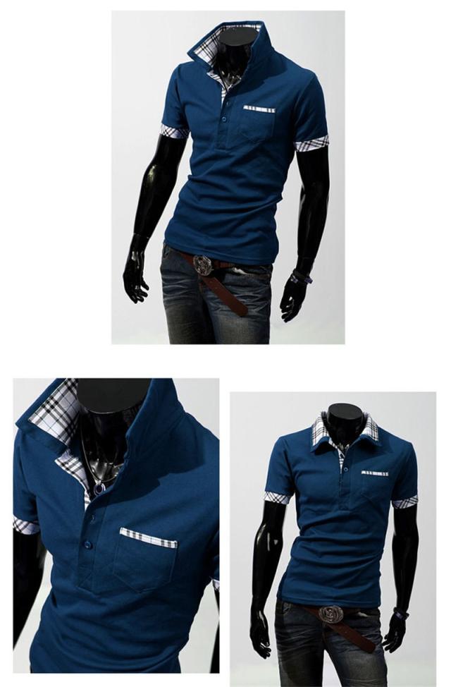 メンズ Vネック シャツ 半袖Tシャツ スポーツシャツ ボーダー バッジ スタンドカラー 無地 お兄系 メンズ