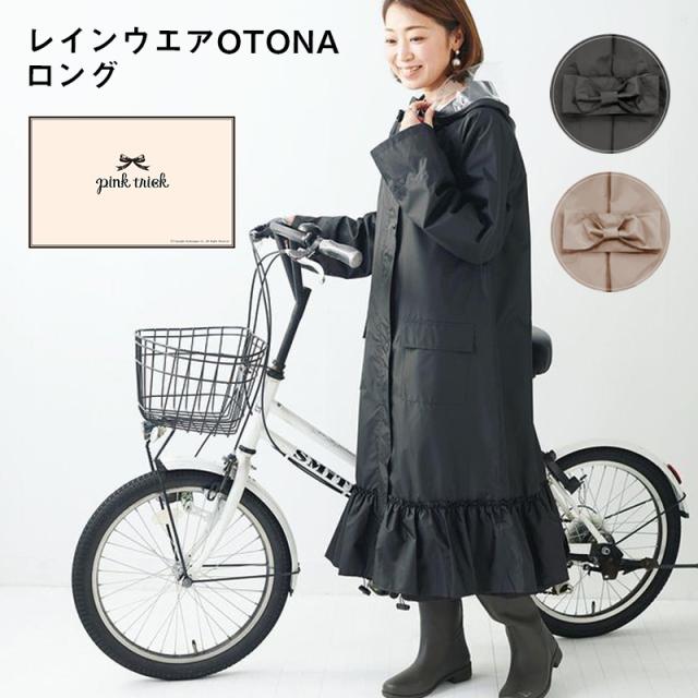 自転車レインコート レインウエア pink trick 自転車 OTONA ロング フリルブラック フリルベージュ かわいい レインコート 合羽 かっぱ 雨具 カッパ リボン レディース フリーサイズ