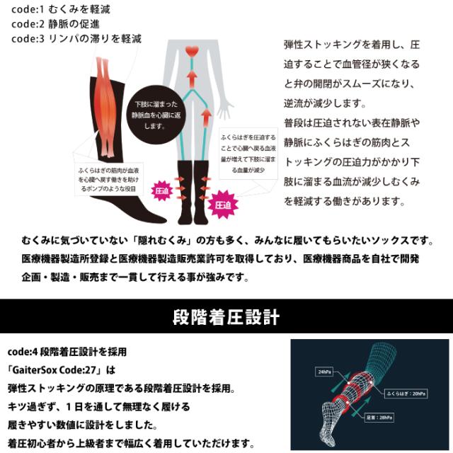 脚の浮腫み血行を改善する目的として作られ、その効果から一般医療機器としての認可を受けた、着圧ソックス。