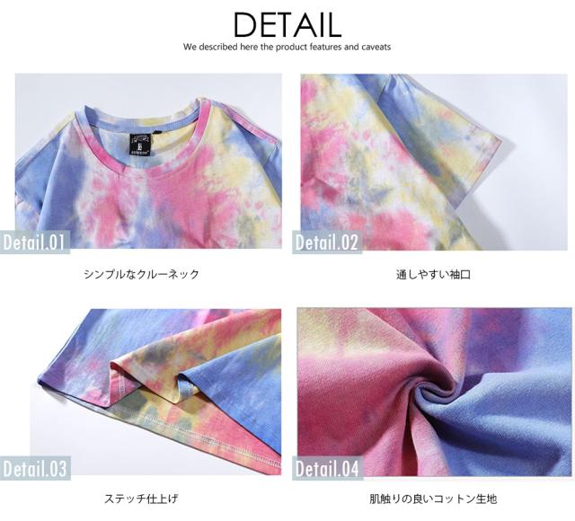【Tシャツ タイダイ柄 カラフル タイダイ 半袖 重ね着 ユニセックス デザインTシャツ ビッグシルエット カットソー カップル トップス カジュアル シンプル プレゼント】