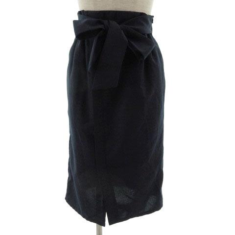 【中古】ロペピクニック ROPE Picnic スカート タイト ハイウエスト ひざ丈 リボンベルト ネイビー 紺 36 レディース