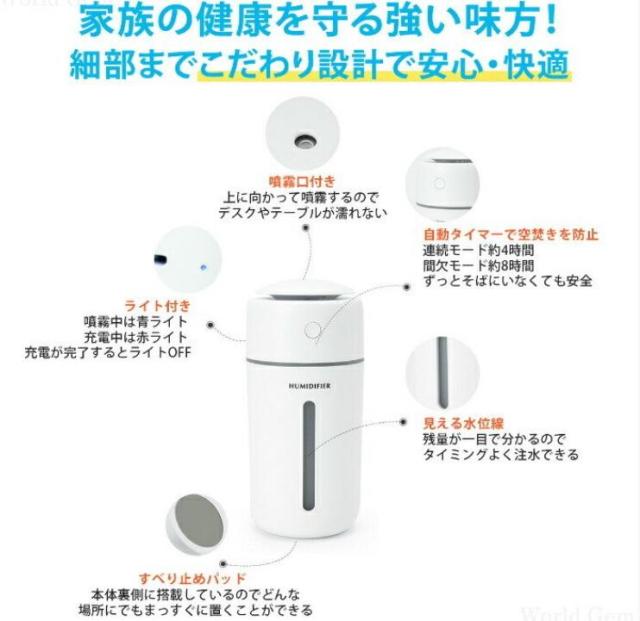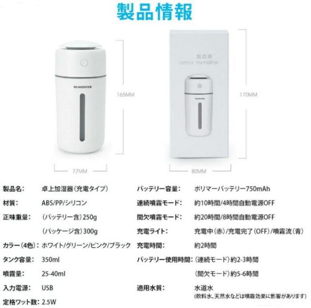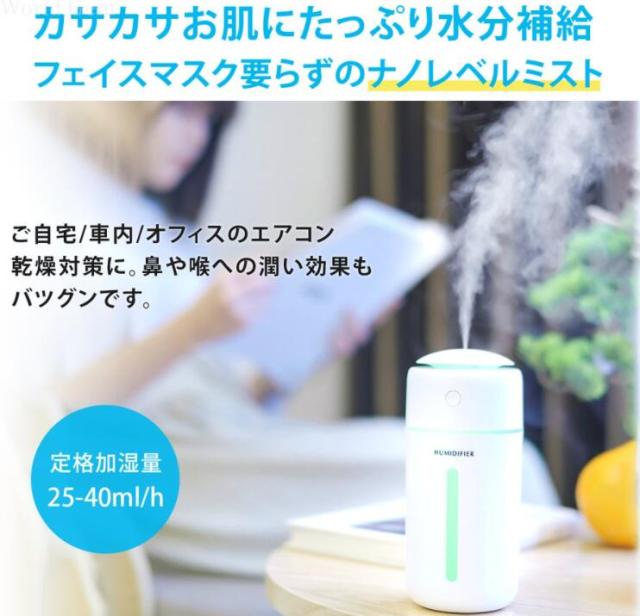 加湿器 卓上 超音波式 充電式 卓上加湿器 寝室 デスク ミニ加湿器 シンプル USB充電 オフィス 寝室 小型 コンパクト 静音
