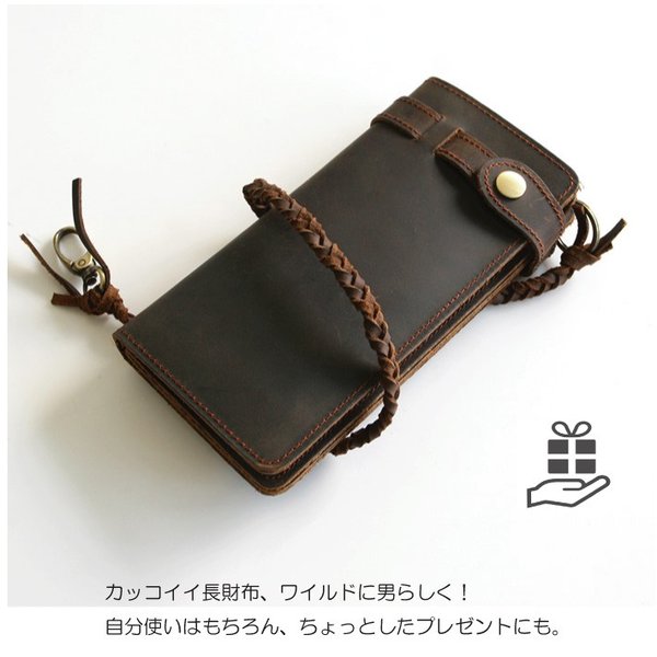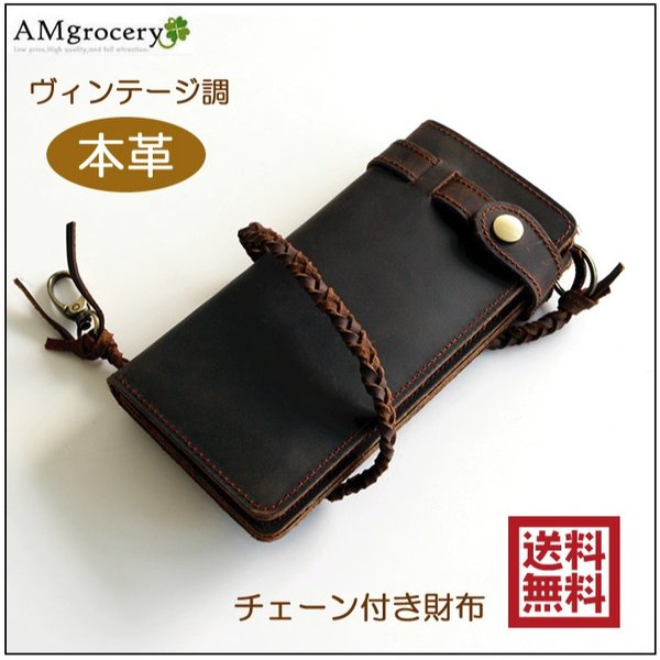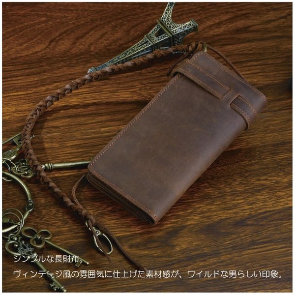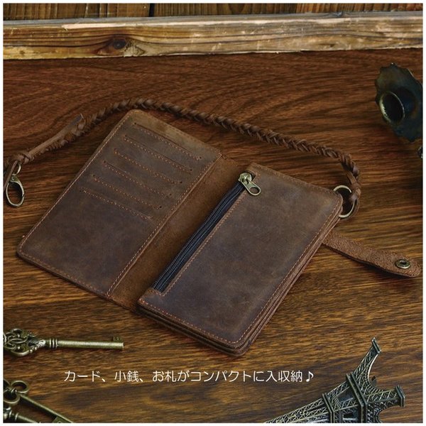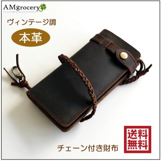 本革 長財布 チェーン付 メンズ カードがたくさん入る ビンテージ風 大容量 コンパクト レザー ギフト プレゼント 男性