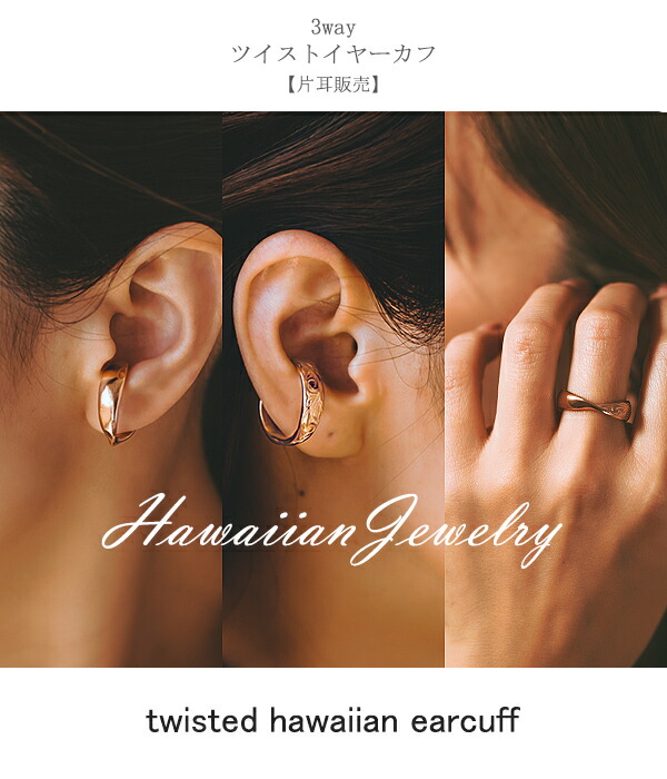 ハワイアンジュエリー イヤーカフ 3way 片耳用 ツイスト ひねり 指輪 リング レディース サージカルステンレス イヤカフ 挟む 流行り メンズ 金属アレルギー 重ねづけ ノンホール ピアス イヤリング 男女兼用 henoheno ブランド ハワイアン
