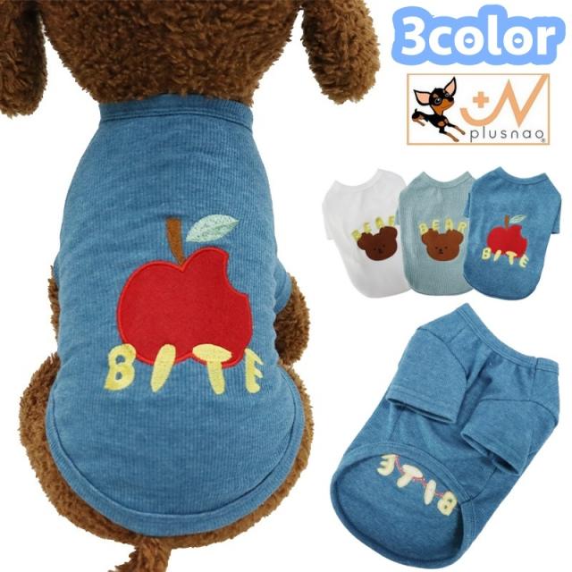 ペットウェア Tシャツ リブ 犬服 猫服 洋服 ドッグウェア キャットウェア プルオーバー 袖あり りんご アップル クマ 熊