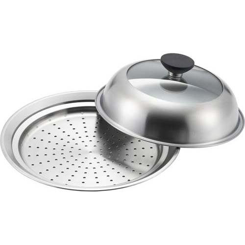 | ・サイズ(約):径24.5*高さ9.2cm ・本体重量(約):500g ・素材・材質:蒸し器/18-8ステンレス、蓋/18-0ステンレス、ツマミ/フェノール樹脂、ガラス/全面物理強化ガラス ・適応サイズ:内径約20〜22cmのフライパンに対応 |