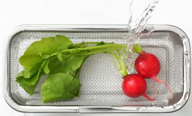 ●足付きで水切れが良く、丈夫なステンレス製ザル。