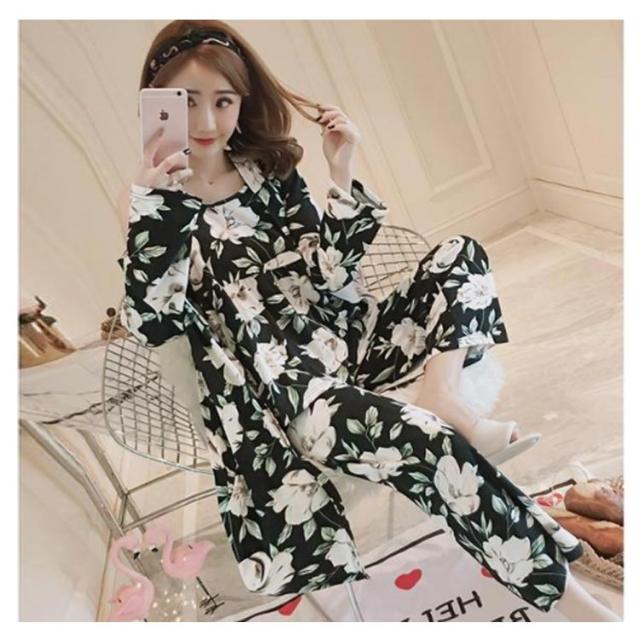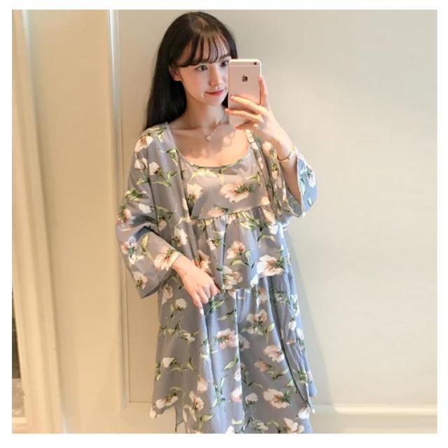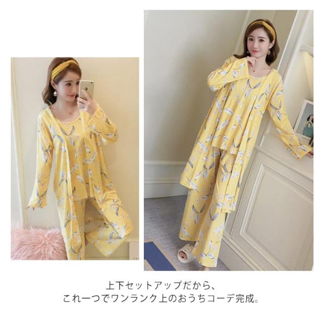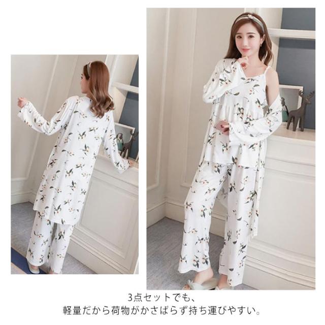 ルームウェア レディース 3点セット パジャマ ロングガウン キャミソール パンツ 上下セット 夏 ナイトウェア おしゃれ 可愛い 長袖 トップス 女の子 部屋着 寝巻き 花柄 自然