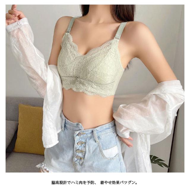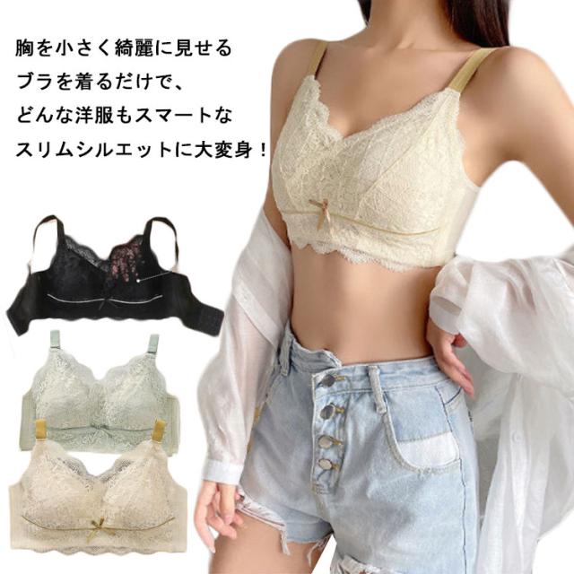 ブラジャー レディース 下着 送料無料 胸を小さく見せるブラ ノンワイヤー フルカップ はみ肉スッキリ レース 胸を小さくする 大きいサイズ 脇高調整ブラ 着痩せ 通気性 細見え スマートブラ