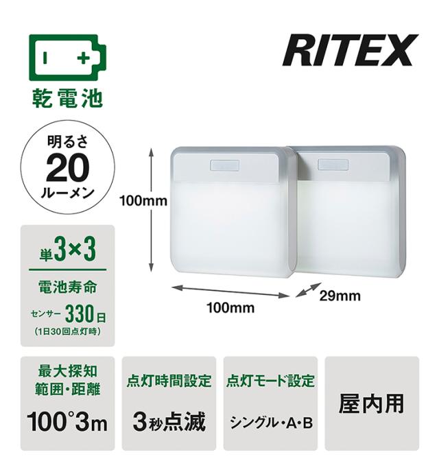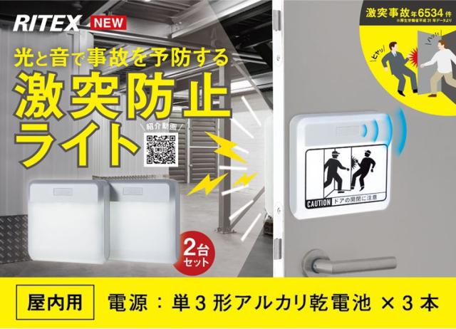 RITEX ライテックス 激突防止ライトワイヤレス 2台入 DW-900 乾電池式 場所を選ばずに設置可能 人感センサーライト センサーライト ムサシ 激突防止 2個セット 防犯ライト室内 事故防止(代引不可)【送料無料】