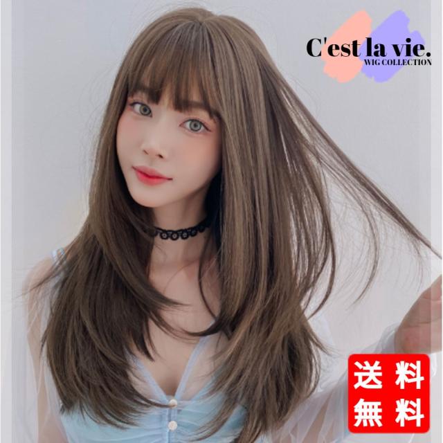 翌日出荷 フルウィッグ ロング シャギー アッシュ ブラウン 医療用 かつら ネット付き 自然 小顔