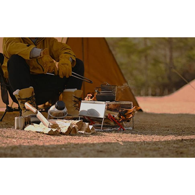 シンプルながら、快適にキャンプ料理が作れて、収納も簡単で使い勝手がよく、アウトドアシーンにぴったりです。直火調理もできるクッカースタンドを手に入れて、ワイルドな焚き火飯にチャレンジしましょう!