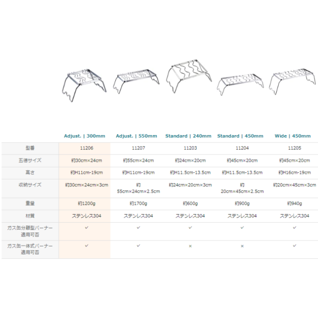 分離型シングルバーナーから一体式バーナーまで、高さ6段調整可能なクッカースタンドです!