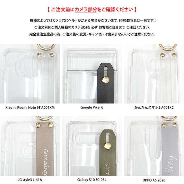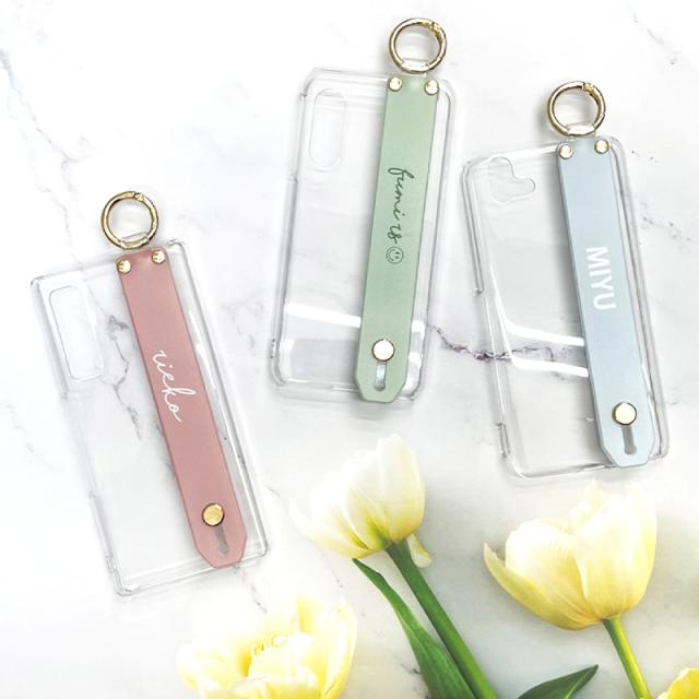 スマホバンド付き 持ち手【Android One S9専用 クリアケース×30色シリコンベルトorレザーベルトに名入れ印刷】スマホケース スマホカバー アンドロイド ワン S9 ケース カバー ハード 落下防止 名前 ギフト 名入れ無料 メール便送料無料 受注生産【印刷】