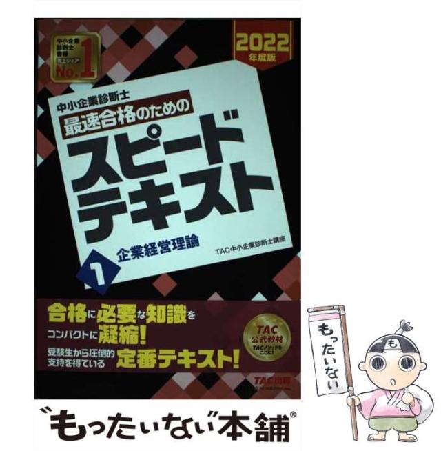 【中古】 中小企業診断士最速合格のためのスピードテキスト 2022年度版1 企業経営理論 / TAC株式会社(中小企業診断士講座) / TAC株式会社出 [単行本(ソフトカバー)]【メール便送料無料】