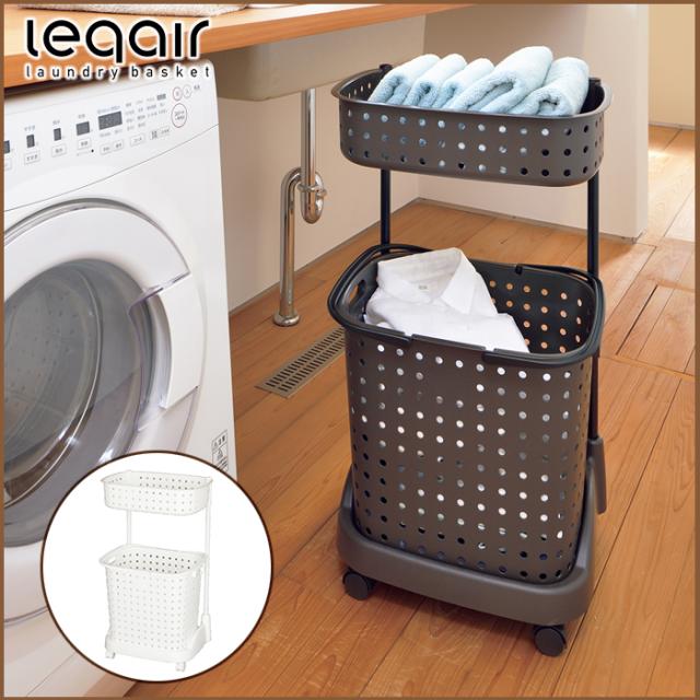 レクエア ランドリーバスケット 2段【 ランドリーバスケット 2段 キャスター 付き 大容量 洗濯カゴ おしゃれ バスケット 脱衣かご 洗濯かご 洗濯物入れ ランドリーワゴン 日本製 関東圏 送料無料 】