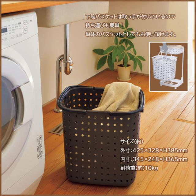 取っ手付下段バスケットは単独で持運び出来るので洗濯カゴとしてもご使用頂けます。