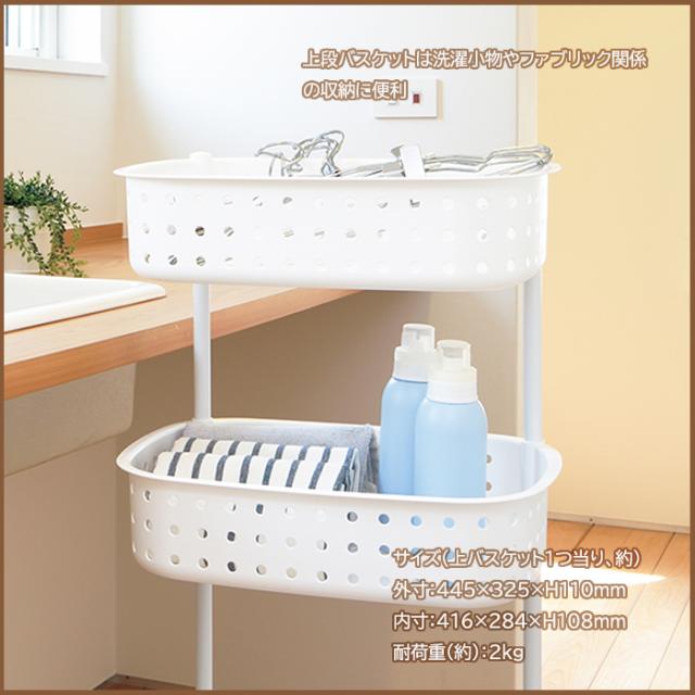 洗濯物は下段の深型バスケットへ入れたり出来る便利な3段ランドリーバスケット。