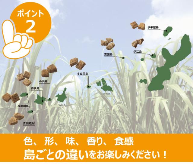 島で育まれたさとうきびから作るため、その味、香り、食感、色は個性豊かです。