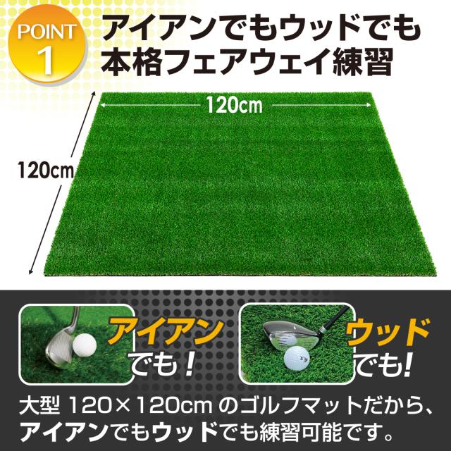 傾斜 ゴルフマット 120×120cm 20mm PGAプロと共同開発 特許取得 ゴルフ 練習 マット 大型 斜面 アプローチ ショット 練習用 屋外用 人工芝 ラフ芝 ゴルフボール 専用バッグ付き