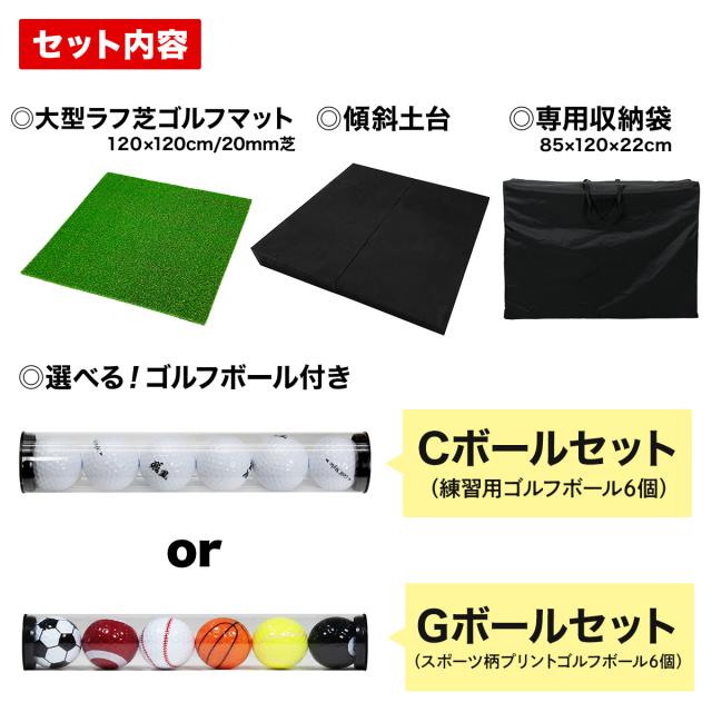 大型ラフ芝ゴルフマット、傾斜EVA土台、専用収納袋、選べるゴルフボール