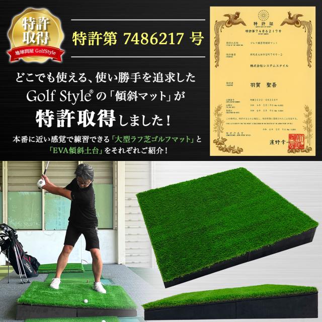 【傾斜で練習できる画期的なゴルフマット】ゴルフコースでは練習場のような平坦な場所はほんどなく、実際は起伏に富んでいて、斜面とラフ芝から如何に距離感を合わせて打ち出せるか、というシチュエーションが多々あります。千差万別のシチュエーション練習に対応できるのが、今回開発した画期的な傾斜用ゴルフマットです。