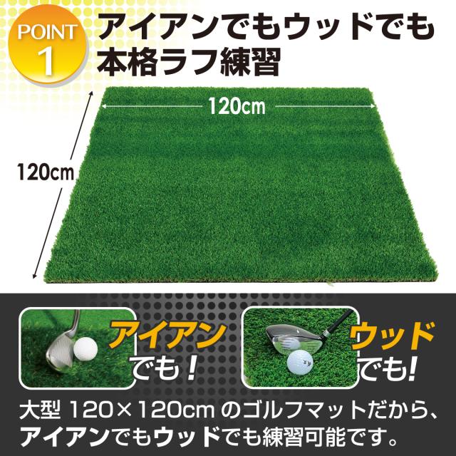 傾斜 ゴルフマット 120×120cm 35mm PGAプロと共同開発 特許取得 ゴルフ 練習 マット 大型 斜面 アプローチ ショット 練習用 屋外用 人工芝 ラフ芝 ゴルフボール 専用バッグ付き