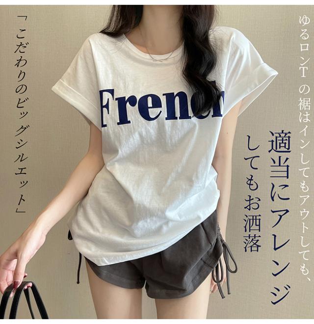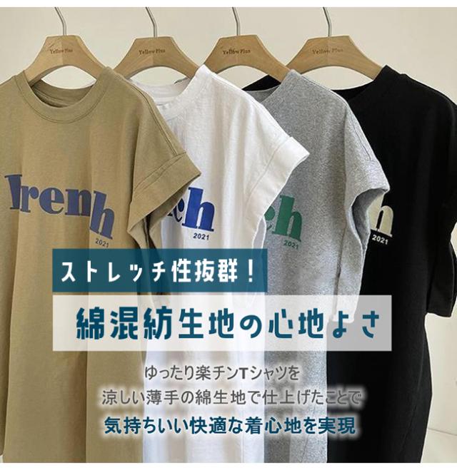 Tシャツ 半袖 レディース 半袖tシャツ 綿混 レディース トップス 体型カバー ゆったり ビッグシルエット ロゴT ロゴ付き 楽チン チュニック マタニティ おしゃれ 秋 夏