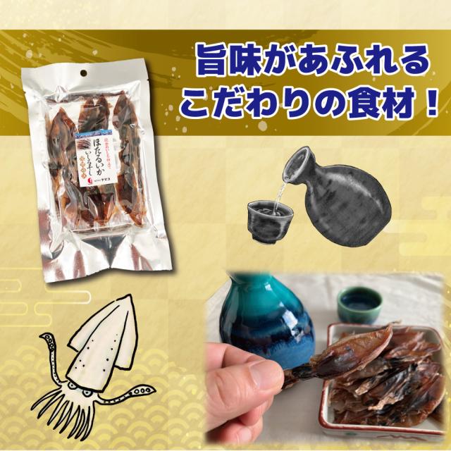 生のホタルイカをそのまま冷風でじっくり干すため旨味と香りが増し口の中で広がります
